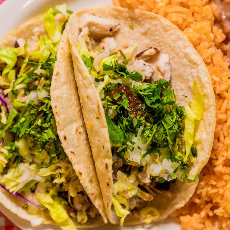 Combo 2 Tacos Served with Rice and Beans